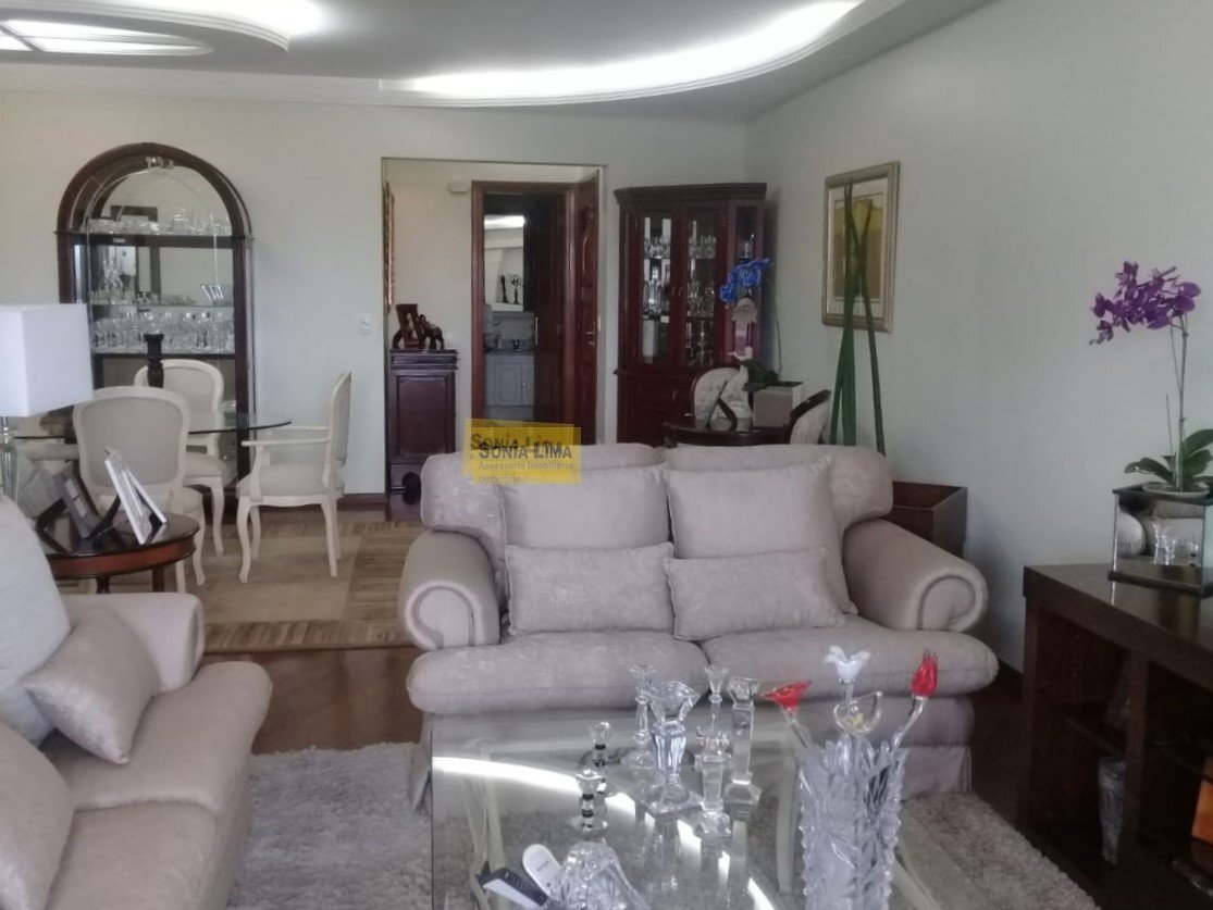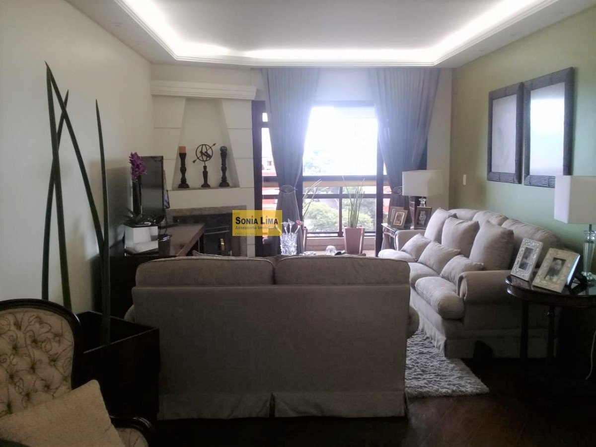 Encantadora sala ampla para três ambientes, sala de estar (com lareira) e sala de jantar, ambascom ótima iluminação natural e bastante arejadas, devido à sacada (fechada por vidros) que possui. Além da sala, esse excepcional apartamento ainda possui quatro dormitórios (sendo duas suítes), três deles com sacada, portanto comexcelente luminosidade e ventilação, outros três banheiros, cozinha espaçosa (com armários embutidos e despensa), área de serviço e três vagas de garagem.